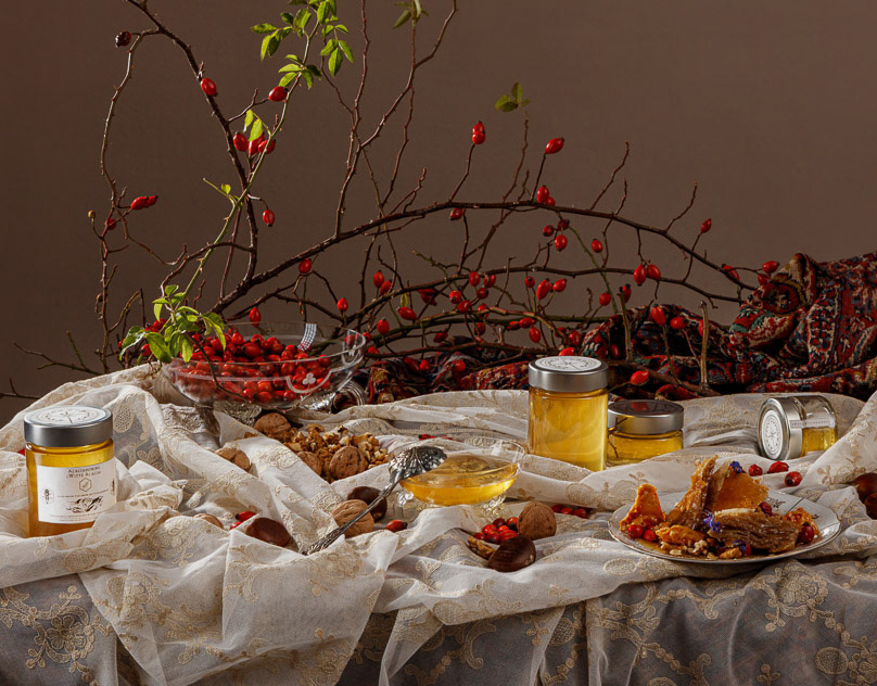 Shooting of luxurious honey products made by Belgian company Esther Gent - inspired by still life paintings of Dutch masters.